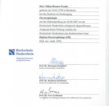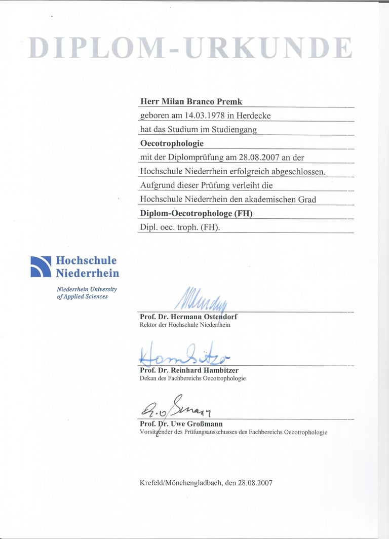 2003-2007 Studium der Ökotrophologie an der Hochschule Niederrhein, Mönchengladbach
