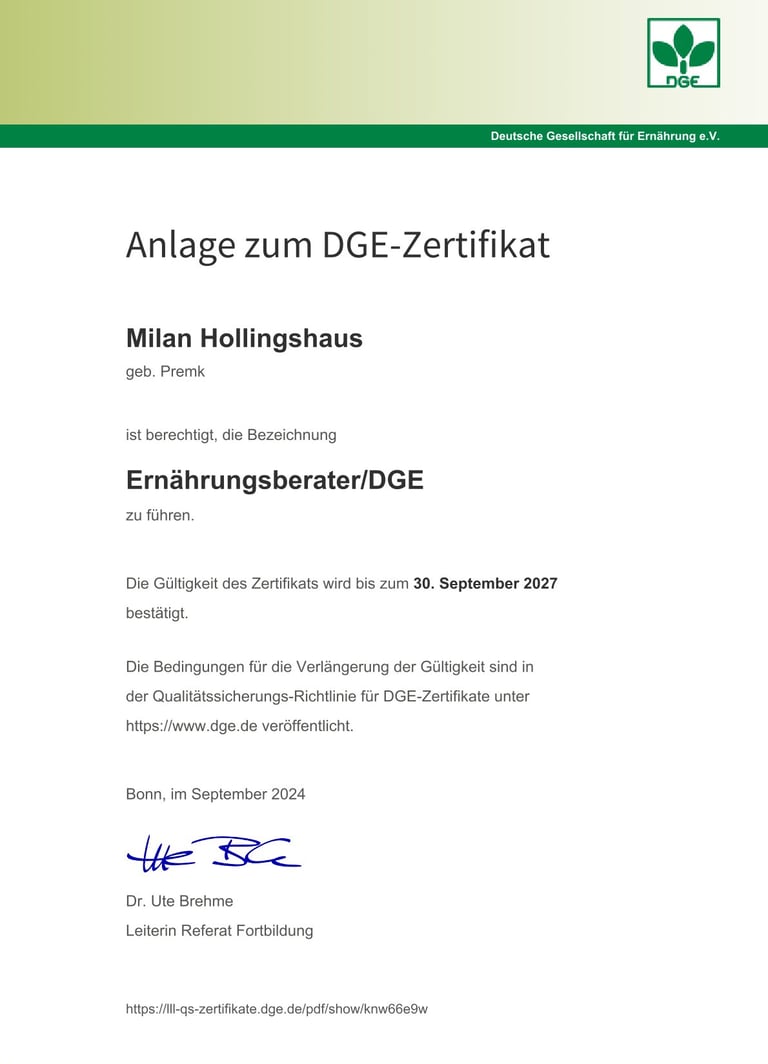 2009 Fortbildung zum Ernährungsberater/DGE, Bonn